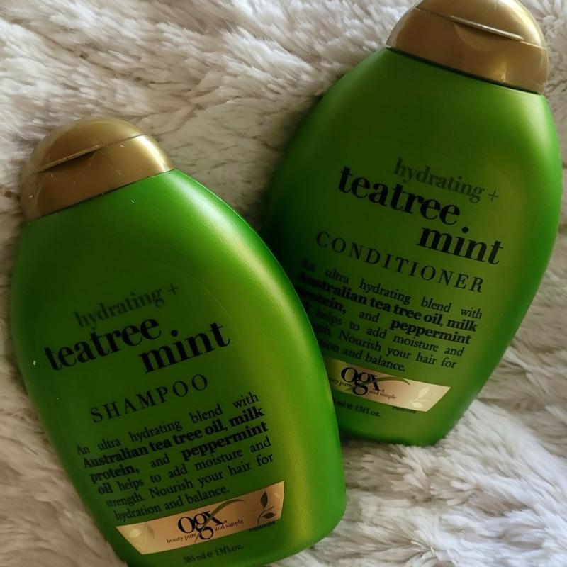 Amazon Com Ogx Hydrating And Tea Tree Mint Shampoo Nourishing Invigorating Scalp Shampoo With Tea Tree Peppermint Oil Milk Proteins Paraben Free Sulfate Free Surfactants 13 Oz Pack Of 4